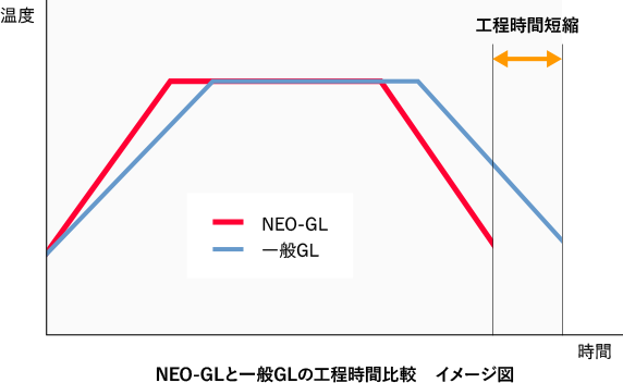 従来のグラスライニングは、鉄に比べて熱伝導性の劣る点が課題でしたが、独自の釉薬配合と焼成技術により、熱伝導性を向上させた「ネオGL」を世界で初めて開発しました。